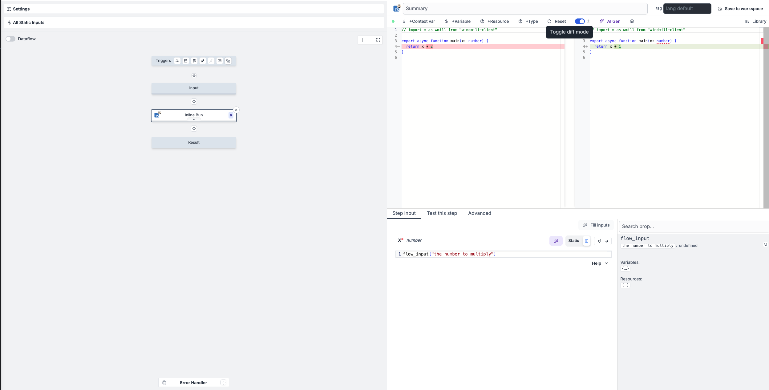 - Chat mode toggle on flow inputs that transforms the flow interface into a chat UI.