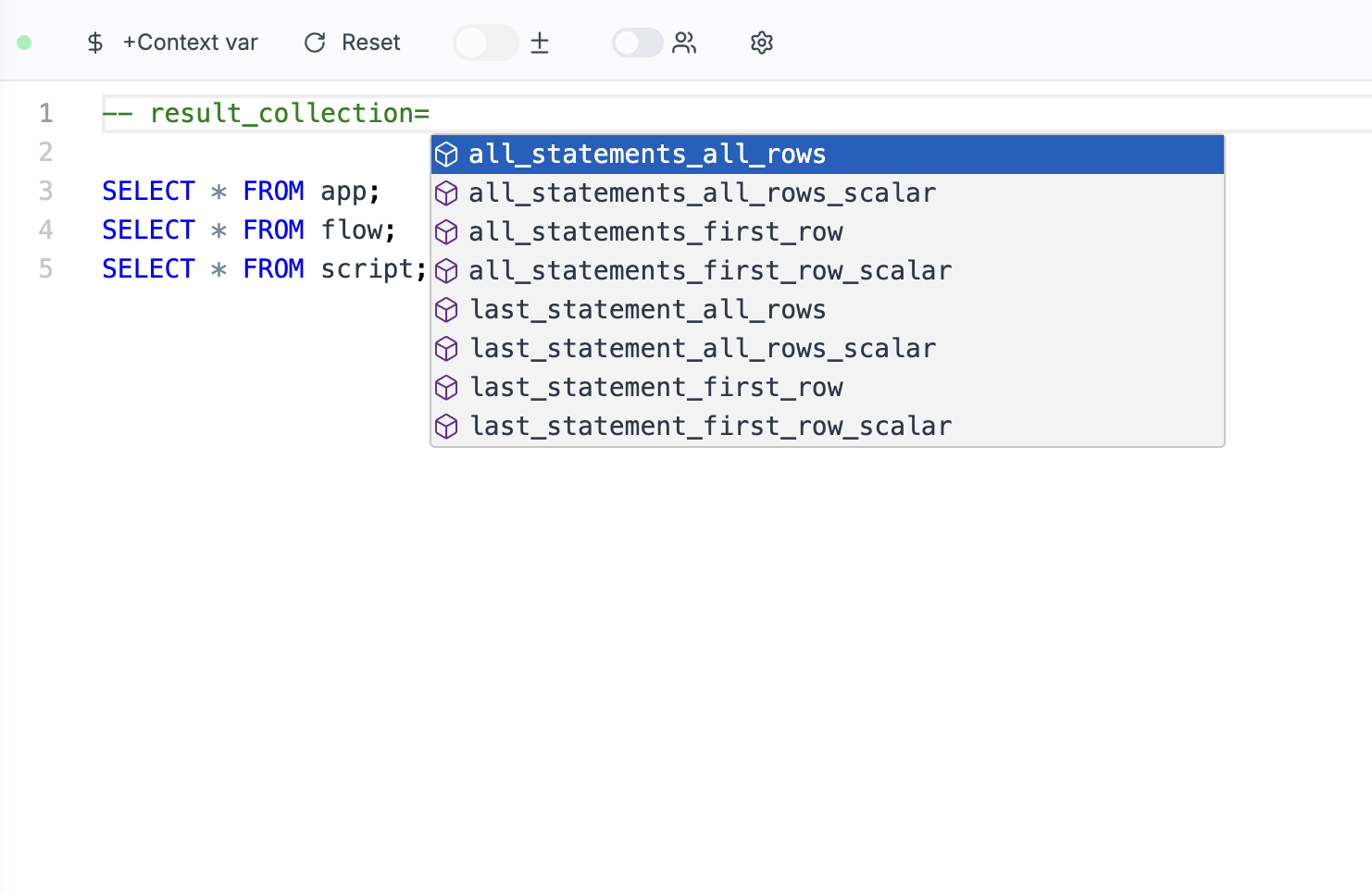 Pin database resource path directly within a SQL script instead of filling it through the UI.