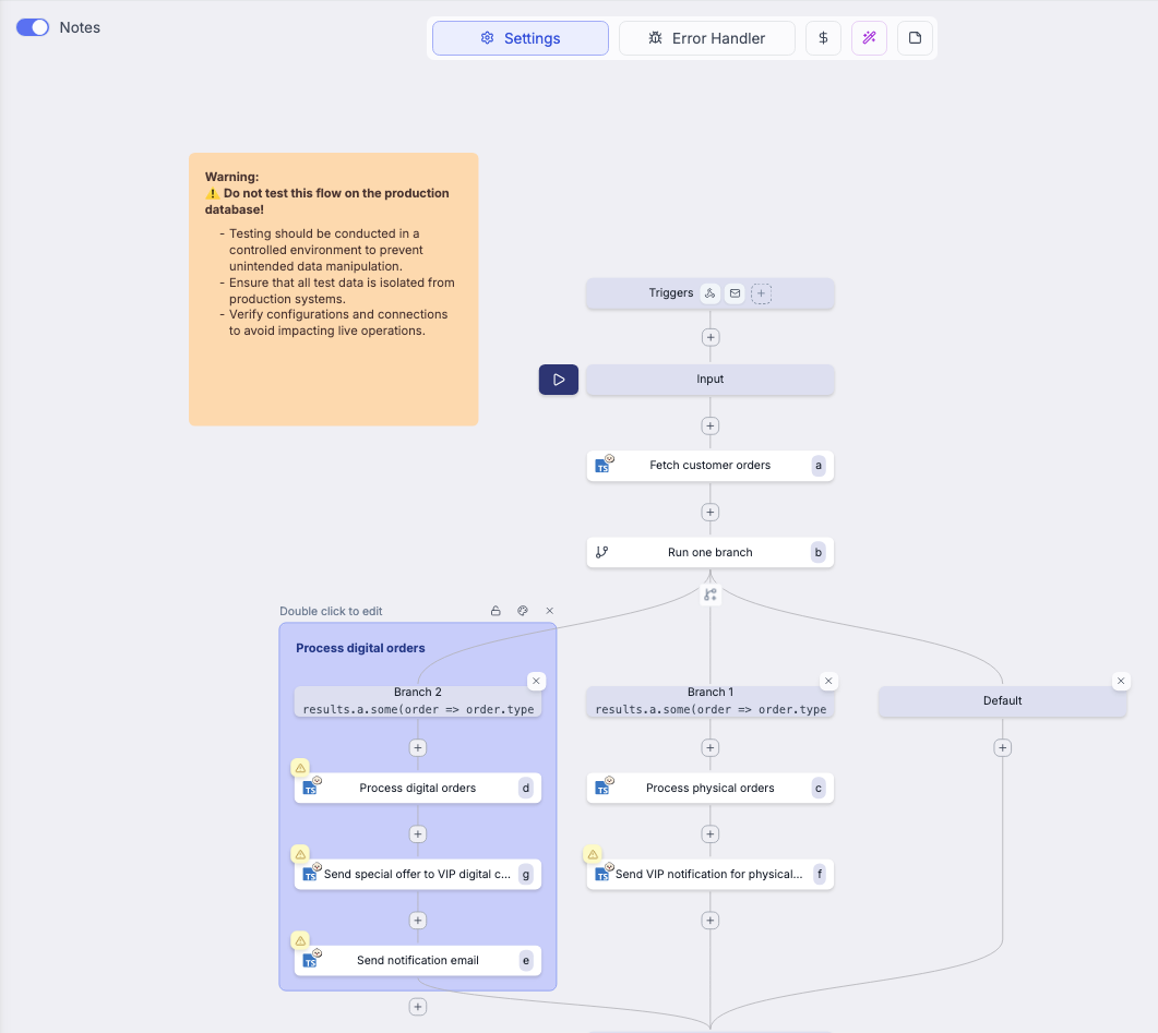 - Group notes that anchor around a group of nodes to explain sections or logical blocks.