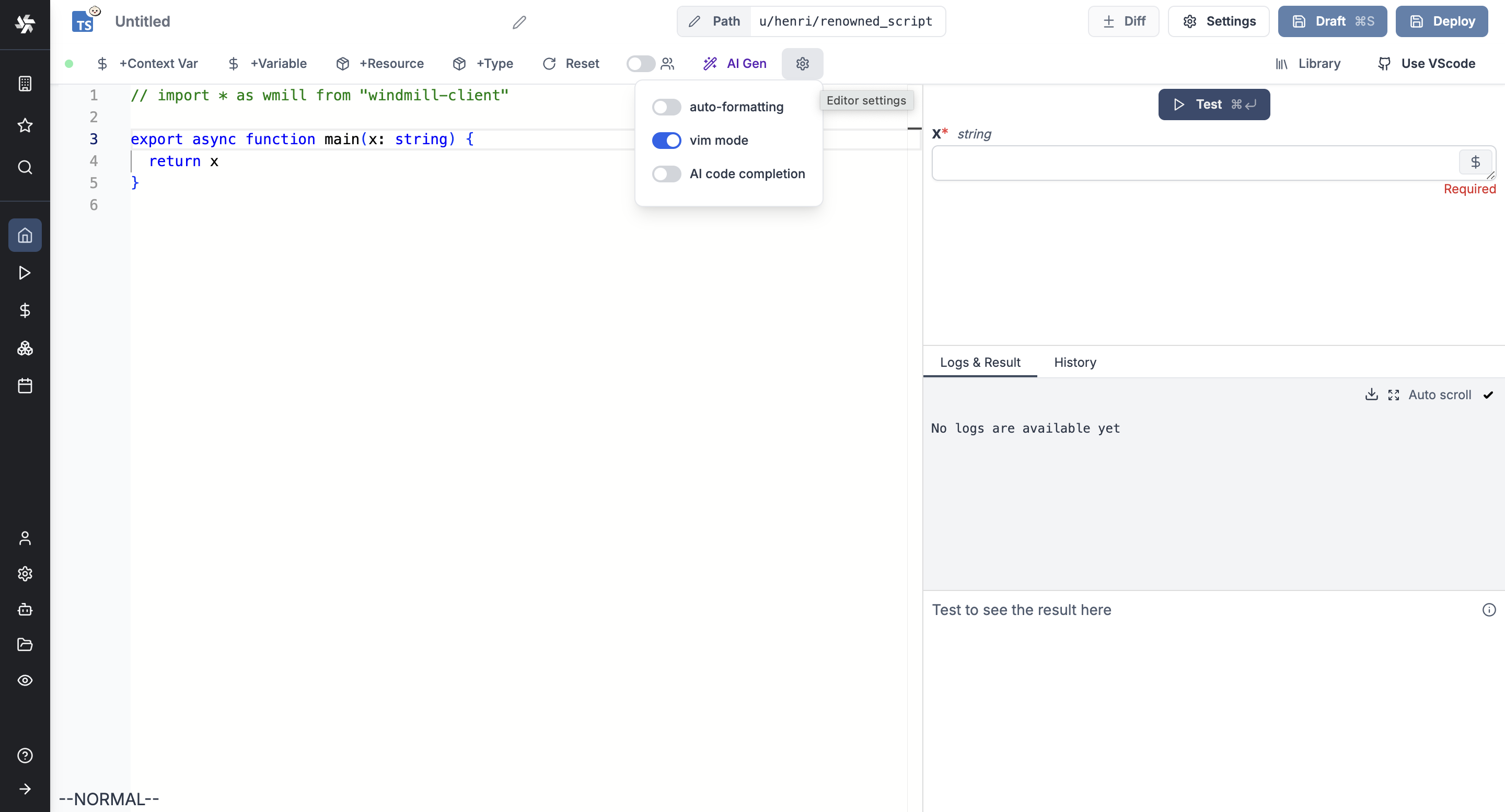 - Trigger scripts with @Windmill in public channels, private channels, DMs, and threads